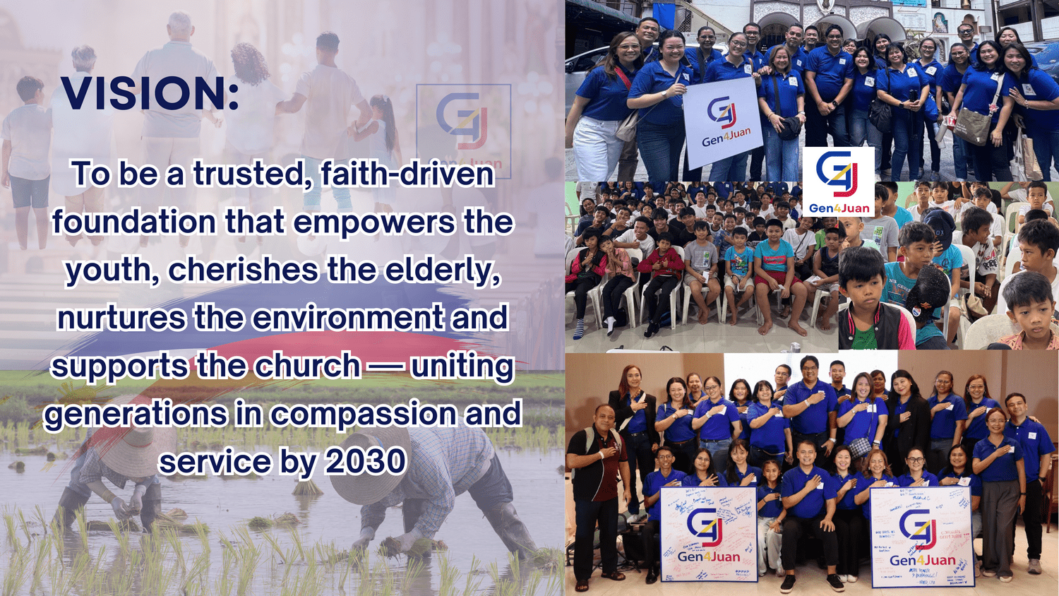 WHO is Gen4Juan for? YOU! If you believe in faith, sustainability, youth empowerment, and elder care, Gen4Juan is your movement. Students and Young Leaders looking to make a difference Churches and Faith-Based Groups strengthening communities Environmental Advocates protecting our planet Families and Caregivers ensuring dignity for elders Collaborators, Volunteers, Donors, and Change-Makers ready to take action Gen4Juan is for everyJuan — because we are stronger together.